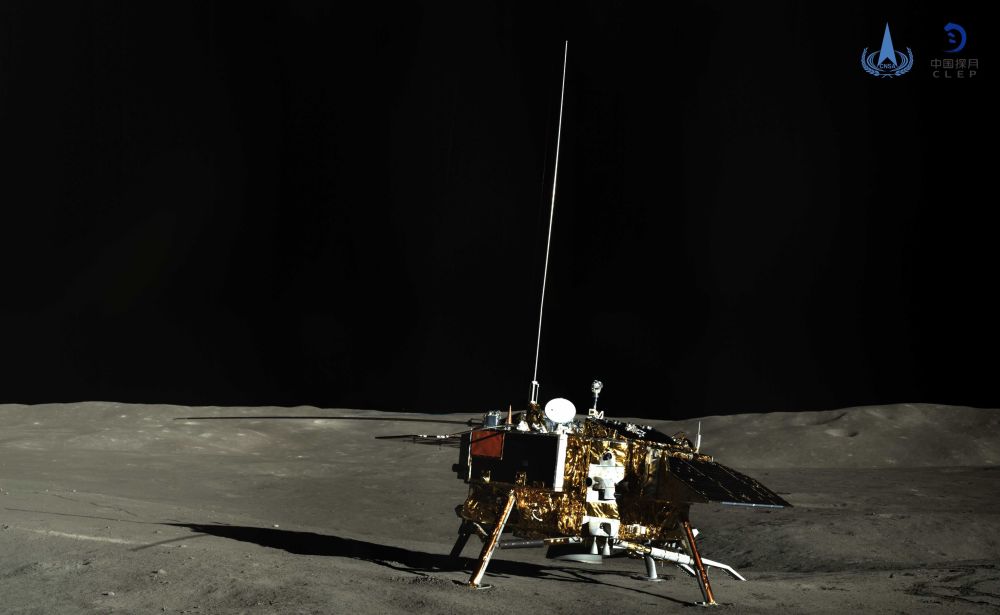 这是2019年1月3日在北京航天飞行控制中心拍摄的降落过程(示意图)。2019年1月3日10时26分,嫦娥四号探测器自主着陆在月球背面南极-艾特肯盆地内的冯·卡门撞击坑内,实现人类探测器首次在月球背面软着陆。