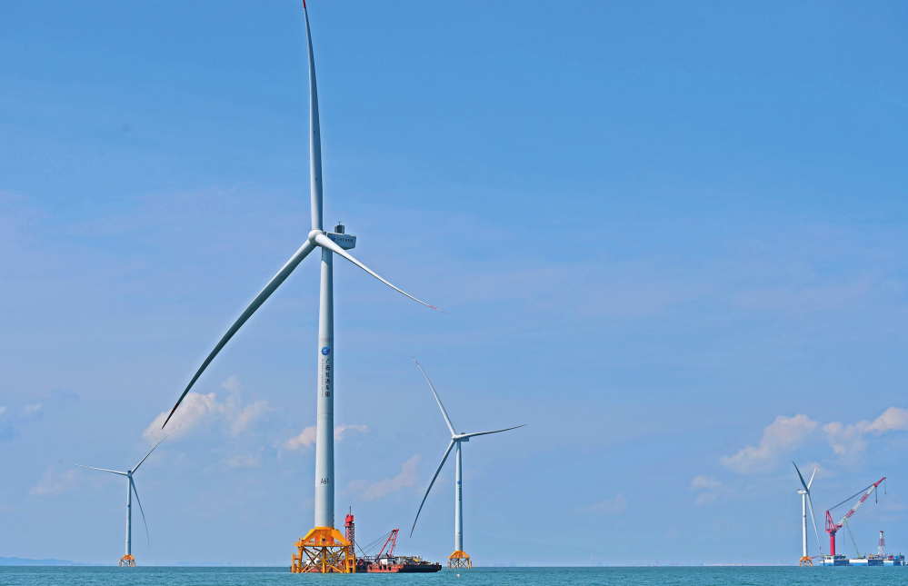 广西首个海上风电示范项目——防城港海上风电示范项目A场址施工现场(2024年5月21日摄)