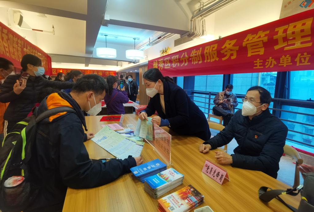 广州市越秀区大塘街党群服务中心工作人员为群众提供居住证办理相关政策咨询服务。(受访者供图)