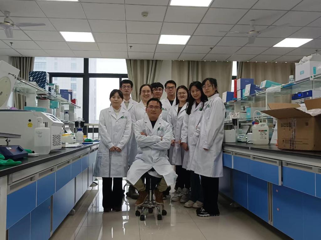 2021年,徐马飞(前排居中)在安徽医科大学的实验室与科研团队合影。(受访者供图)