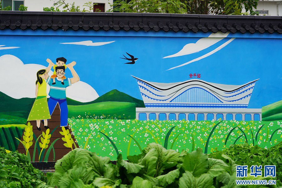 图为江西省余干县沿河村内高铁元素的彩绘文化墙。
