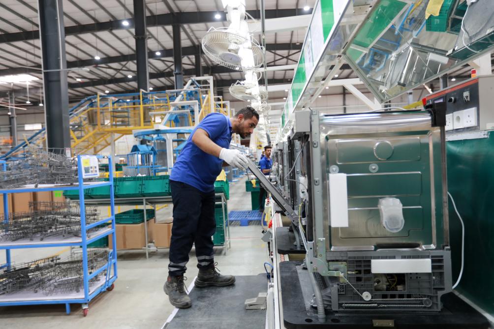 2023年8月10日,在埃及苏伊士省的中埃·泰达苏伊士经贸合作区,员工在工厂生产线上工作。