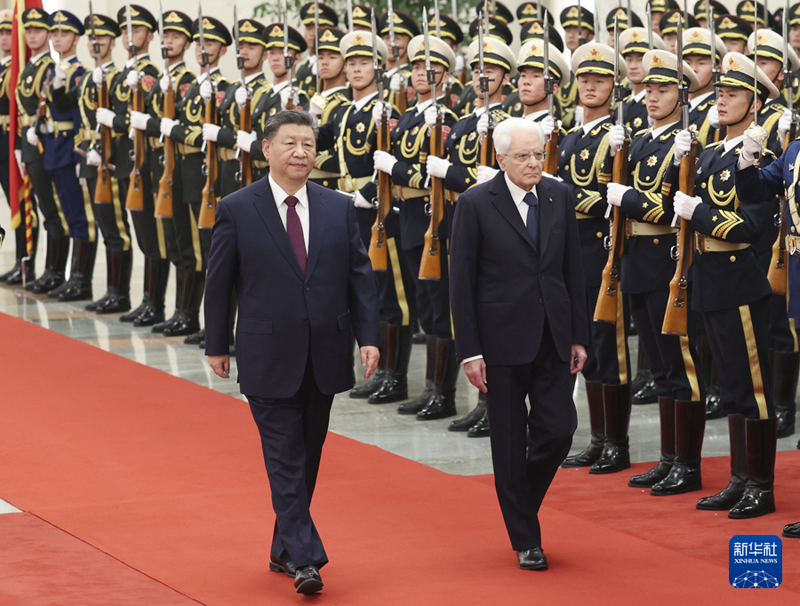 11月8日下午,国家主席习近平在北京人民大会堂同来华进行国事访问的意大利总统马塔雷拉举行会谈。这是习近平在人民大会堂北大厅为马塔雷拉举行欢迎仪式。 新华社北京11月8日电(记者董雪、冯歆然)11月8日下午,国家主席习近平在北京人民大会堂同来华进行国事访问的意大利总统马塔雷拉举行会谈。 习近平指出,今年是中意建立全面战略伙伴关系20周年。双方发表了加强全面战略伙伴关系的行动计划,一致同意秉持历史悠久的丝路精神,推动双边关系进入发展新阶段。当今世界正在经历百年未有之大变局,中国和意大利作为两大文明古国,应该弘扬开放包容、兼容并蓄的传统,推动国际社会以对话化解分歧、以合作超越冲突,携手构建和合共生的美好世界。 习近平强调,互尊互信、互利共赢应该始终成为中意关系最鲜明的底色。双方应该充分发挥中意政府委员会和各领域对话机制作用,加强交往,夯实互信,继续理解和支持彼此核心利益和重大关切,做相互支持的战略伙伴。中意文化合作富有成果和活力,双方要继续密切人文交流,落实好新一轮文化合作执行计划,深化文化艺术、文物保护、经典著作互译、旅游、教育等领域合作,将文化遗产地合作打造为中意人文交流新亮点。双方要支持语言教学和青少年交流,共同培育更多新时代的马可·波罗。双方要坚持做相互成就的合作伙伴。中方愿扩大进口意大利优质产品,支持两国企业相互投资,继续推进科技环保、清洁能源、航天等领域合作。 习近平指出,当今世界正在经历深刻变化,中欧作为两大和平、建设性力量,坚持战略沟通、开放合作、交流互鉴的正确方向,有利于双方,有利于世界。中国将欧洲作为实现中国式现代化的重要伙伴,双方应该坚持合作共赢,妥善管控分歧,让中欧关系展现应有的成熟和稳定。中方愿同欧方加强合作应对全球性挑战,希望意方为此发挥积极作用。 11月8日下午,国家主席习近平在北京人民大会堂同来华进行国事访问的意大利总统马塔雷拉举行会谈。 11月8日下午,国家主席习近平在北京人民大会堂同来华进行国事访问的意大利总统马塔雷拉举行会谈。 马塔雷拉表示,我对2017年访华以及2019年接待习近平主席访意的情景记忆犹新。今年是马可·波罗逝世700周年,马可·波罗同中国的渊源是意中友好源远流长、两大文明交相辉映的缩影。当今世界正在经历深刻演变,人类社会需要加强团结互助,实现和谐共处。意中应该进一步深化文化、教育、语言教学、遗产地结好等人文领域交流合作,为推动东西方文明交流互鉴、促进人类文明进步作出新的贡献。意方坚定恪守一个中国原则,始终将中国作为重要合作伙伴,期待同中方一道,以庆祝意中建立全面战略伙伴关系20周年为契机,加强经贸、科技等领域合作,推动两国关系迈上新的高度。意方在许多重大问题上同中方立场相近,都反对保护主义,倡导相互开放,主张加强建设性沟通与团结合作,共同应对各种挑战。意方愿同中方密切多边协作,为促进世界和平与稳定贡献意中两大文明的智慧。 会谈后,两国元首共同见证签署关于文化、科技、教育、世界遗产地结好等领域多项双边合作文件。 11月8日下午,国家主席习近平在北京人民大会堂同来华进行国事访问的意大利总统马塔雷拉举行会谈。这是习近平在人民大会堂北大厅为马塔雷拉举行欢迎仪式。 11月8日下午,国家主席习近平在北京人民大会堂同来华进行国事访问的意大利总统马塔雷拉举行会谈。这是习近平在人民大会堂北大厅为马塔雷拉举行欢迎仪式。 11月8日下午,国家主席习近平在北京人民大会堂同来华进行国事访问的意大利总统马塔雷拉举行会谈。这是习近平在人民大会堂北大厅为马塔雷拉举行欢迎仪式。 会谈前,习近平在人民大会堂北大厅为马塔雷拉举行欢迎仪式。 天安门广场鸣放21响礼炮,礼兵列队致敬。两国元首登上检阅台,军乐团奏中意两国国歌。马塔雷拉在习近平陪同下检阅中国人民解放军仪仗队,并观看分列式。 11月8日下午,国家主席习近平在北京人民大会堂同来华进行国事访问的意大利总统马塔雷拉举行会谈。这是习近平和夫人彭丽媛同马塔雷拉和女儿劳拉合影。 当晚,习近平主席和夫人彭丽媛在人民大会堂金色大厅为马塔雷拉总统和女儿劳拉举行欢迎宴会。 王毅参加上述活动。
